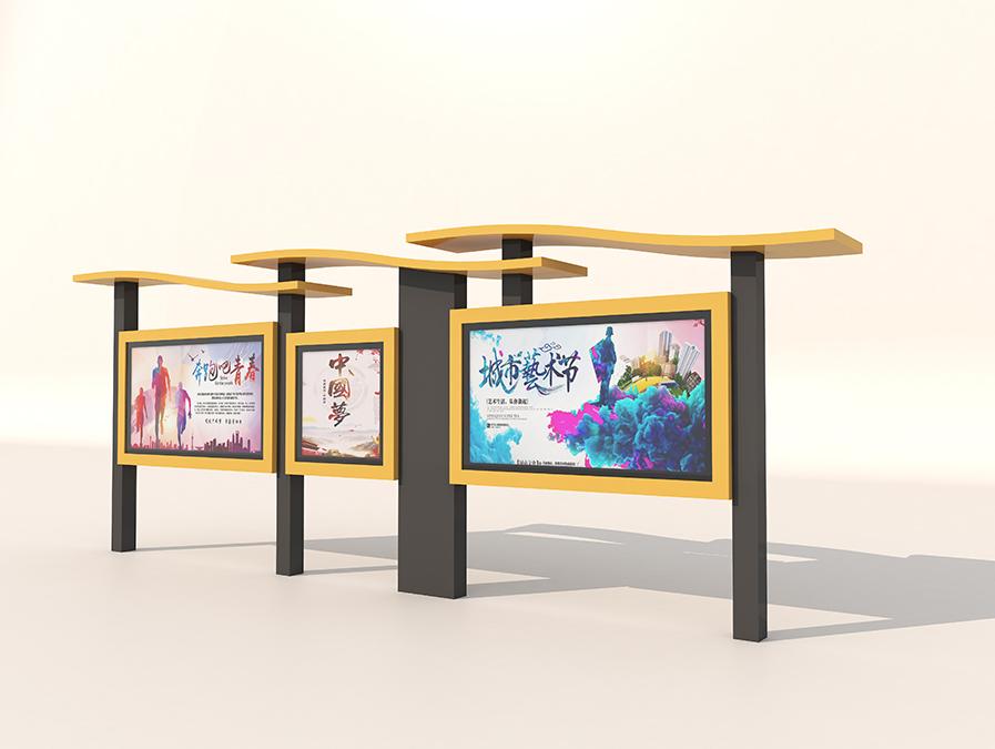 尺寸:产品尺寸可根据用户需求个性化定制。 材质:立柱采用150*150*3mm镀锌管,箱体门框采用1.5mm镀锌板,视窗采用5mm钢化玻璃。